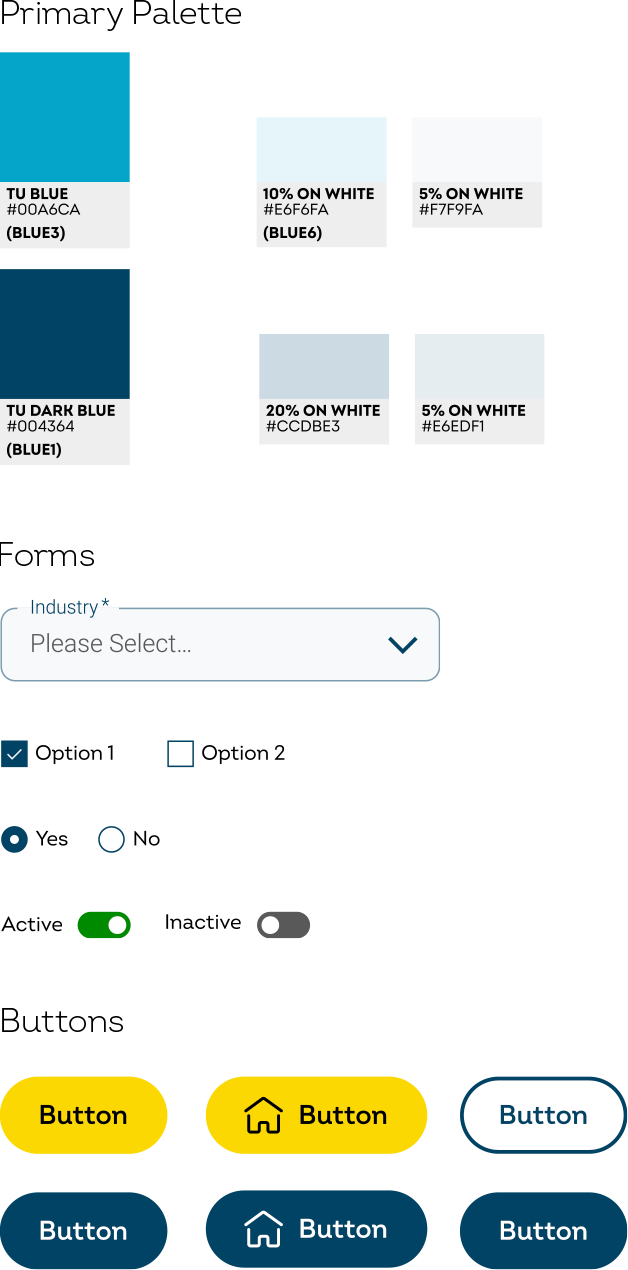 The UI Group at TransUnion has been developing and updating a visual styleguide for application development. This includes styles and HTML for web applications; Angular components and now mobile designs. As TU grows we want to encourage development teams to follow UX best practices & our brand guidelines while making implementation as easy as possible.