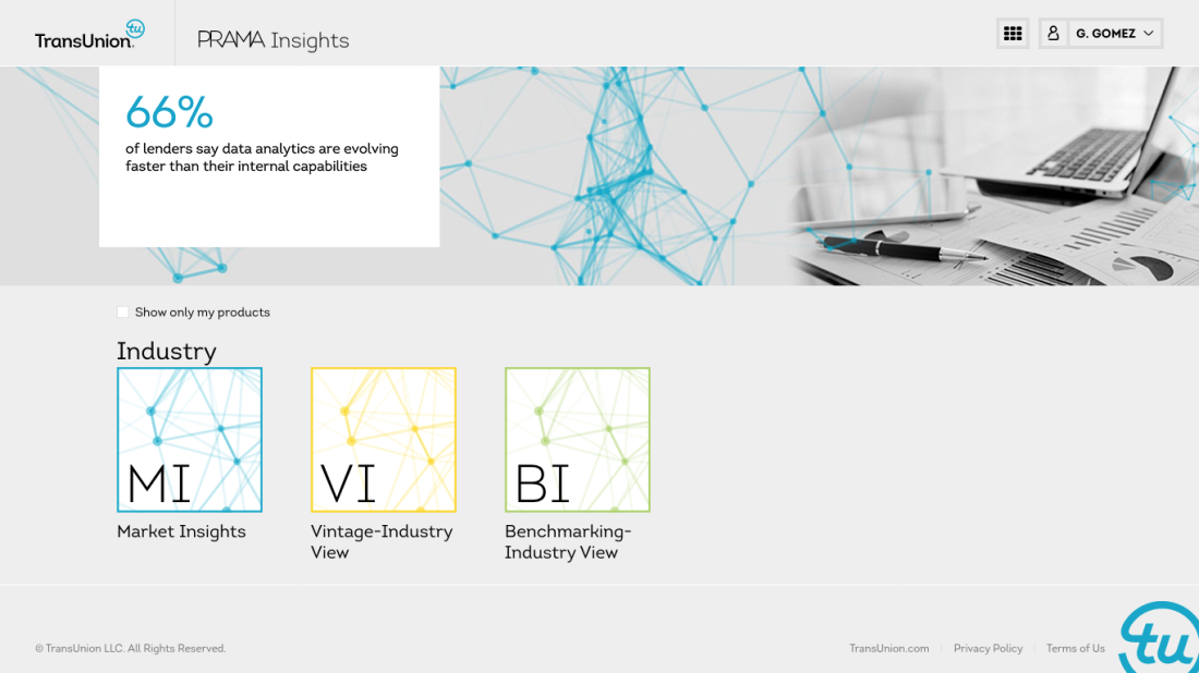 In 2016, TransUnion launched Prama, a new data and analytics group focused on empowering clients with actionable insights. Their first product, Insights, was an analytics dashboard and data visualization tool built to identify market trends, analyze relevant customer segments, and support data-driven decision making. The platform served as a business intelligence (BI) solution, helping clients make informed adjustments and strategic decisions based on real-time data.