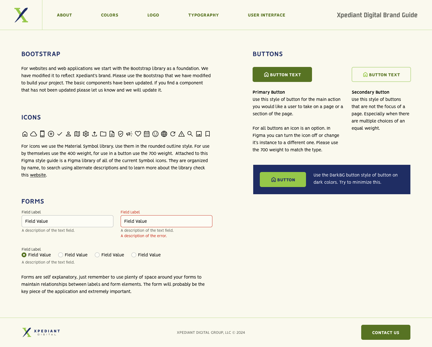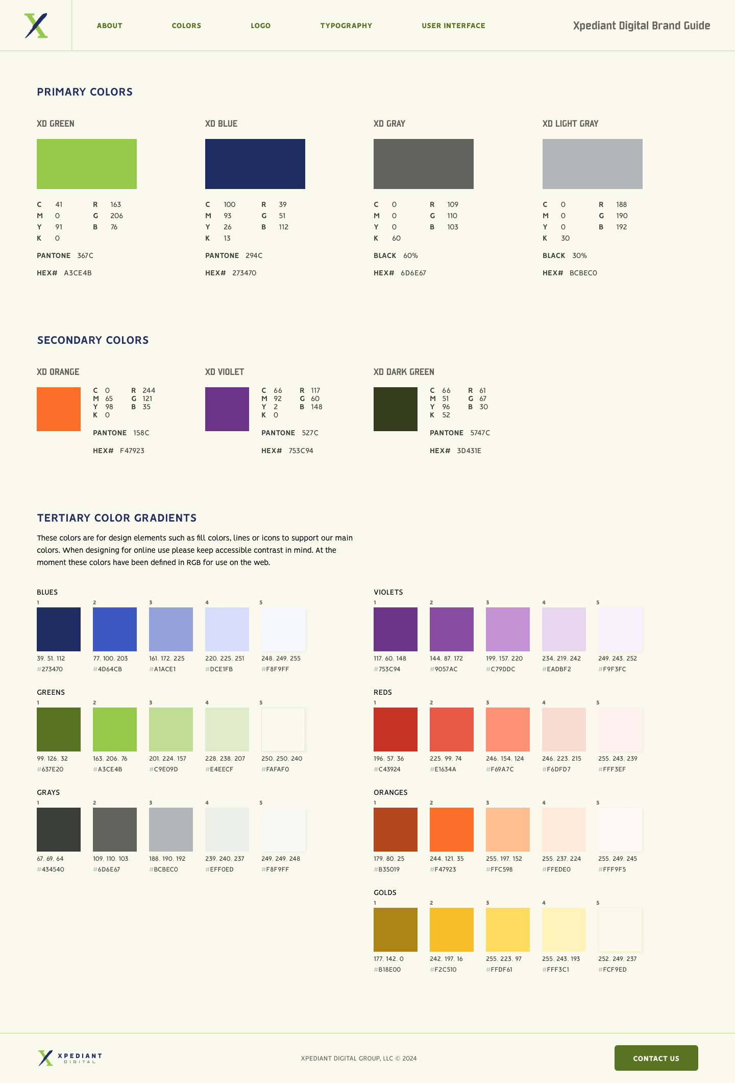 Xpediant Digital needed to update their brand guidelines to accommodate their marketing website and digital product development.